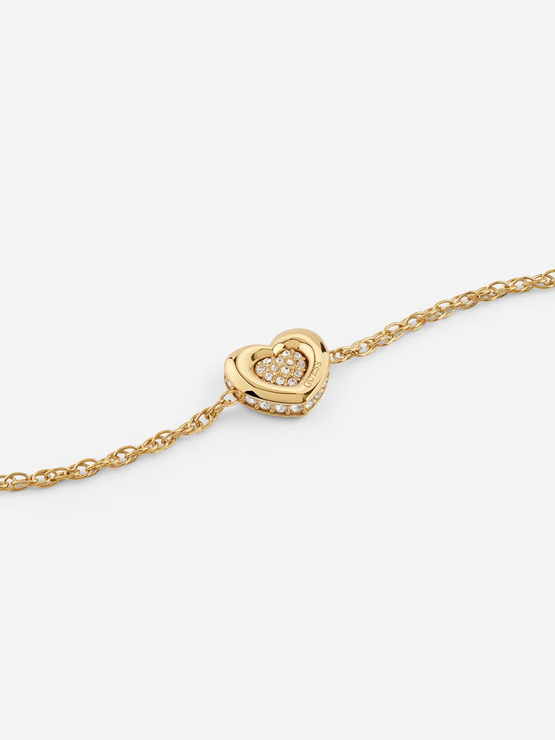 Bracciale in acciaio inossidabile. Modello a catena regolabile., con charm a forma di cuore con pavé. Cristalli applicati. Chiusura ad aragosta.