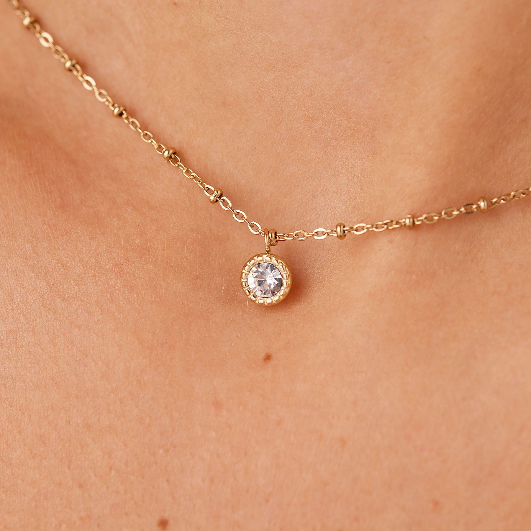 Collana in acciaio 316L con cristallo pendente.